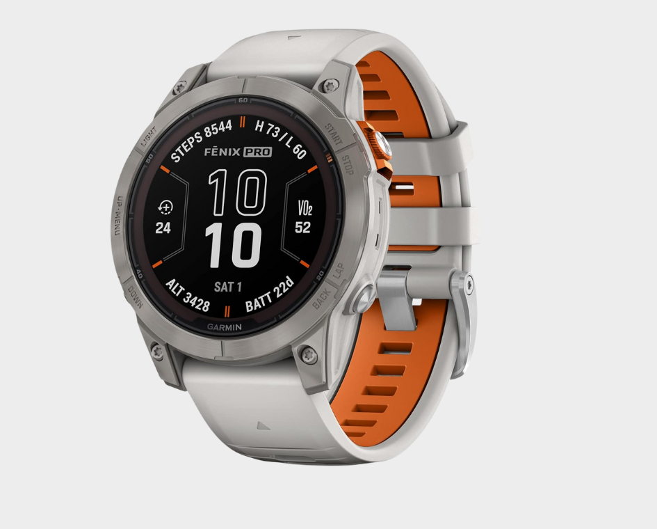 Garmin fēnix 7 Pro Sapphire Solar, Multisport GPS Smartwatch, Built-in Flashlight, Solar Charging Capability, Fog Gray/Ember Orange